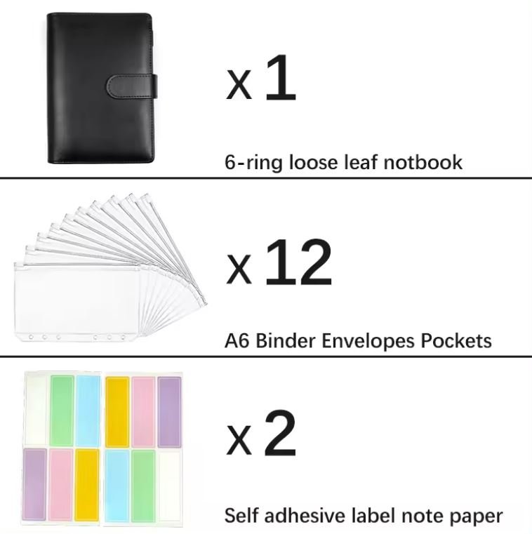 A5 A6 Budget Binder Planner with Cash Envelopes, Colorful PU Leather Notebook Binder