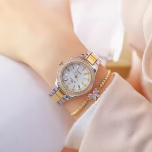 BS Watch 1258 Luxury Crystal Women Dress Watch Fashion Rose Gold Quartz Watches Female Stainless Steel Ladies Wristwatches