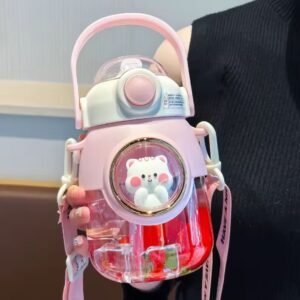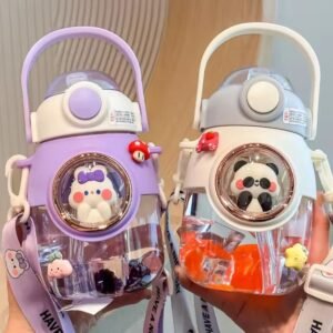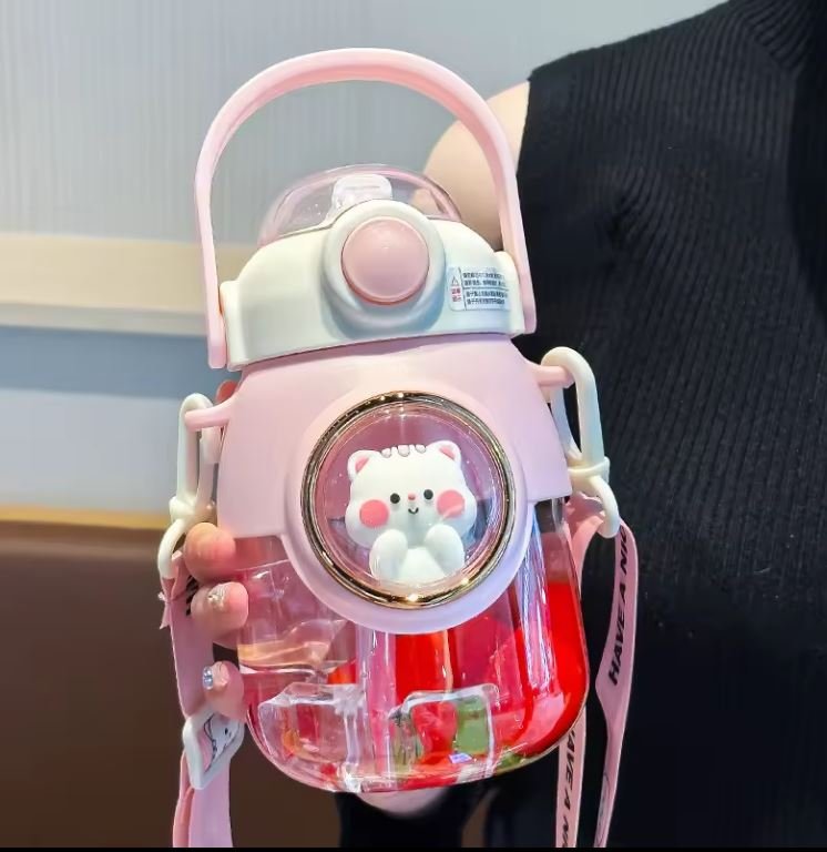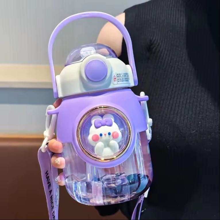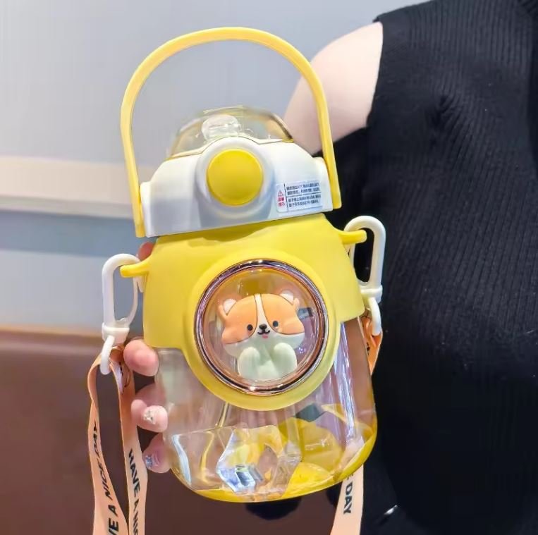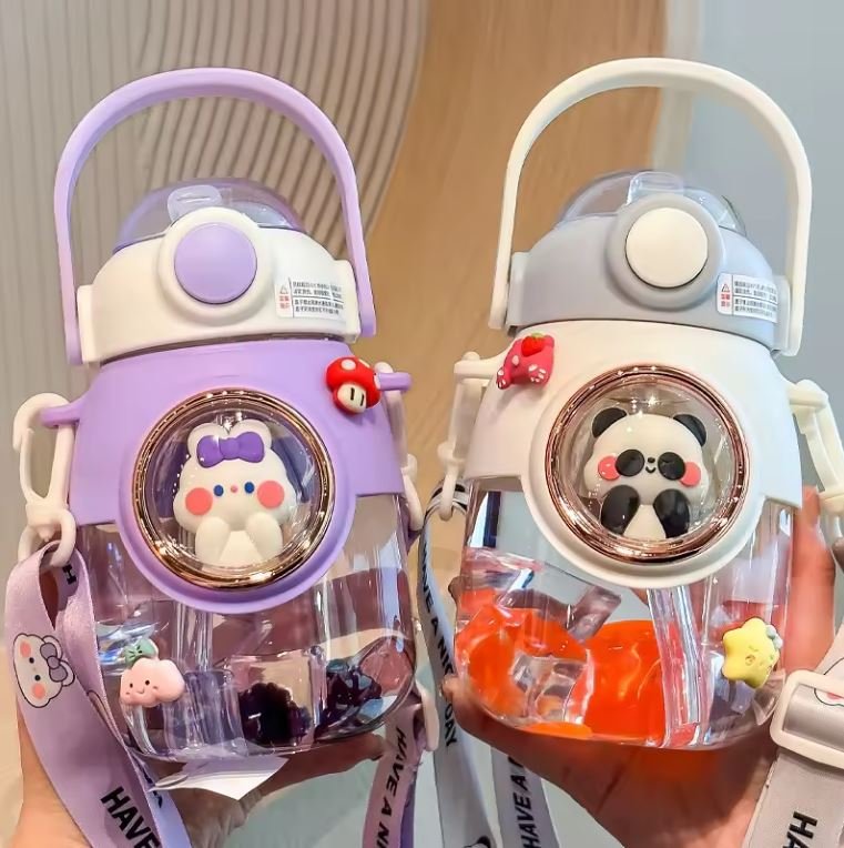 Kawaii cute cartoon Creative gift plastic water bottle 820ml cute animal straw water bottle