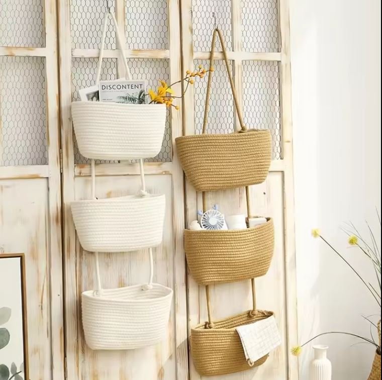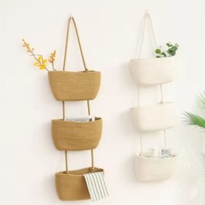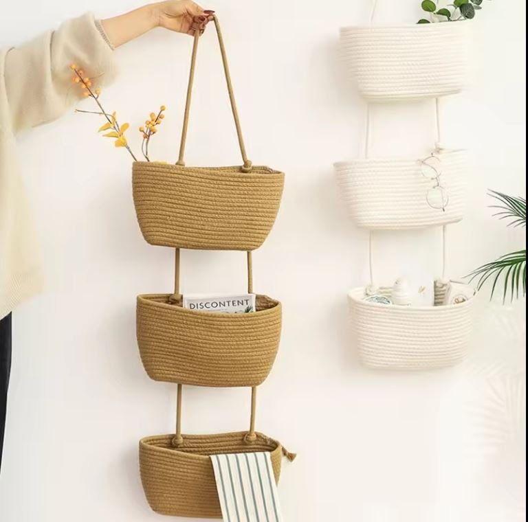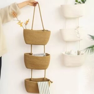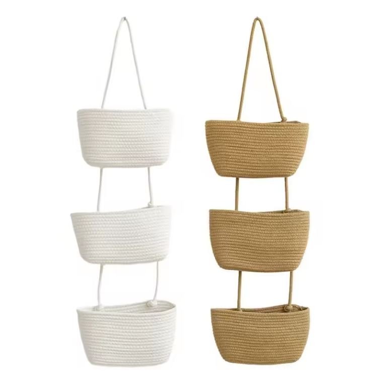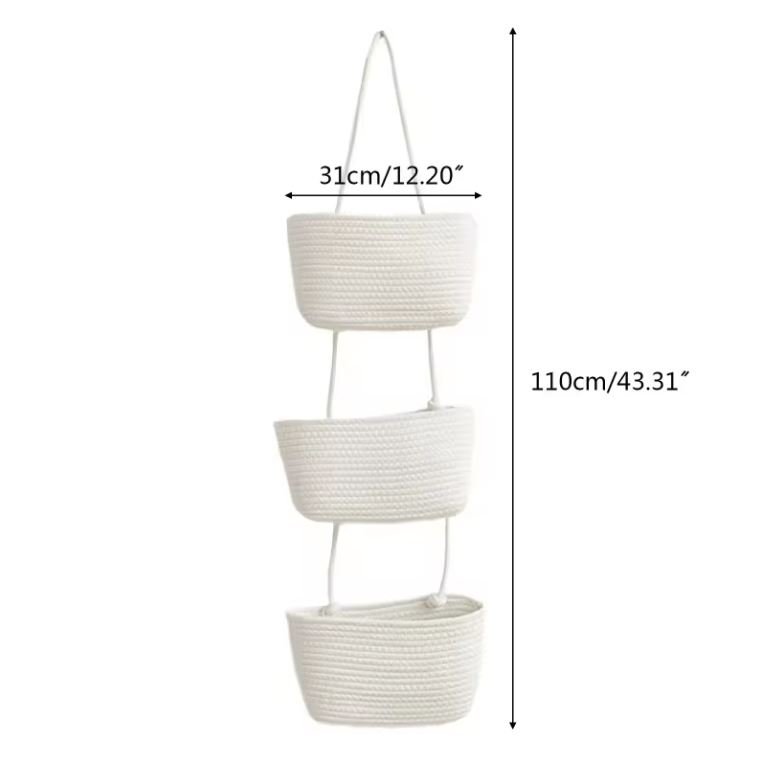 New Design Wall Hanging Woven Storage Basket Cotton Rope Organizer 3 Tier Multipurpose for Home Bedroom Toys Book Organization