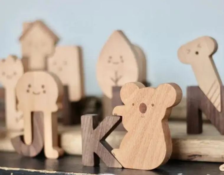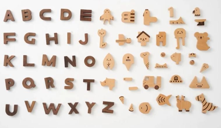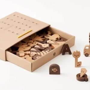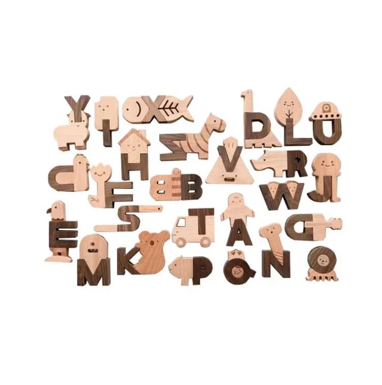 Wooden magnetic alphabet letters set with matching shapes for children preshcool education 60 pcs in 1 set